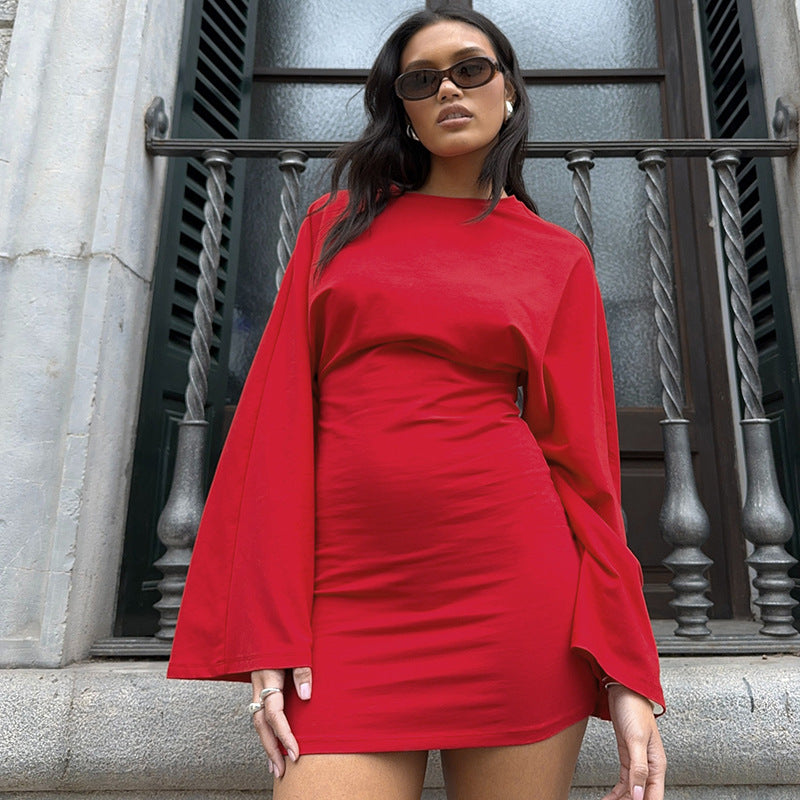 Women's Summer New Solid Color Repair Sexy Long Sleeve Packed Husca Dress Woman DJPT