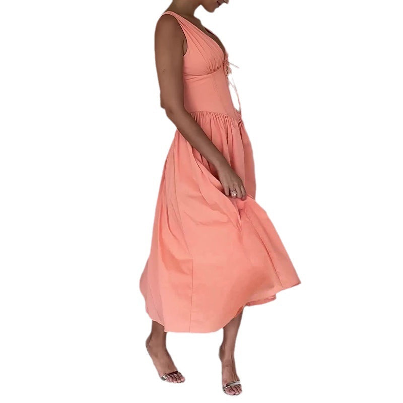 Women's Summer Vneck Sleeveless High-Rise Slimming Dress Holiday Dress