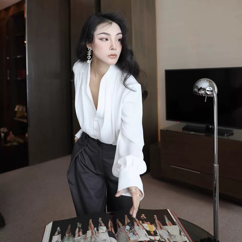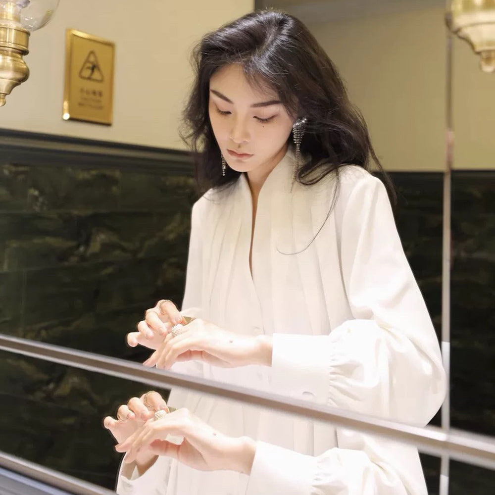 Zhao Sanguan Elegant Collar White Shirt Single-Drace Commuting Top 2024 New